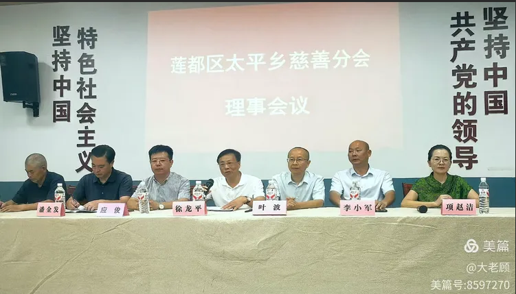 功德碑揭牌仪式结束后,在天师楼红色基地举行了莲都慈善太平分会理事会议。会长徐龙平作了“积德行善”的主题报告;曾翠红、邱海平、徐丽华等三位善人介绍了“积德行善福报自来”的介绍;莲都区革命老区促进会常务副会长潘金发以十个“最”、 六个“联”、六个“力”、六个“不”评价了莲都慈善太平分会的工作成效。